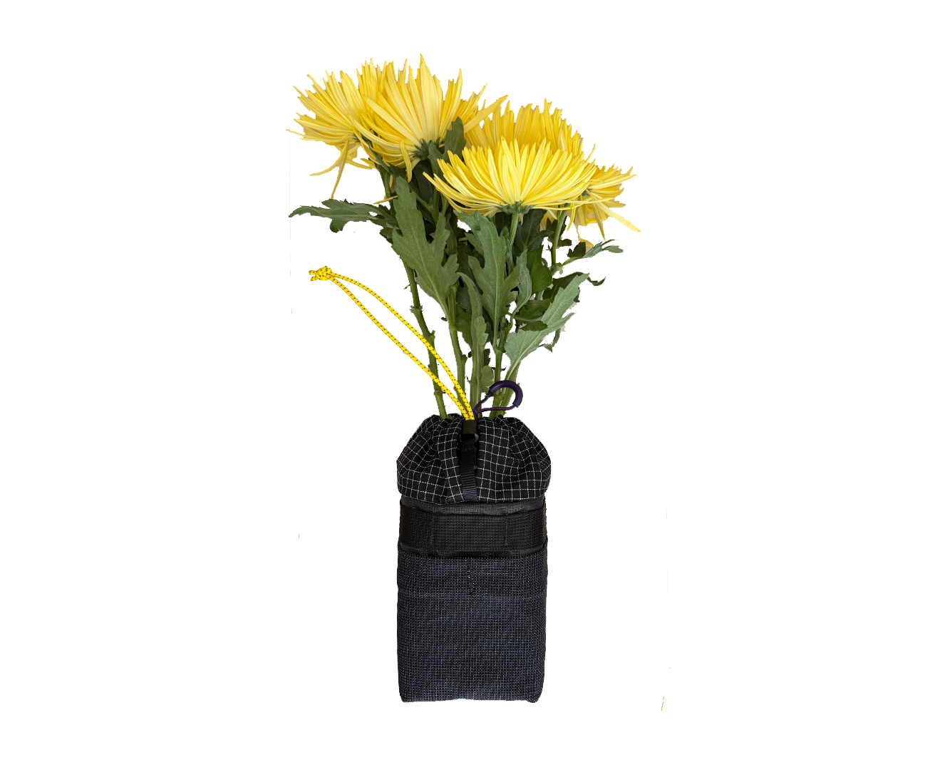 An ultralight bicycle stem bag. Large main pocket fit for a 32oz nalgene, the extra-mega-grande-delux burrito from your local spot, a liter of biodynamic wine, a compact camera, enough candy to rot the teeth out of your skull, an extra layer, whatever you want. Exterior stretch mesh pocket for crushed cans (4) banana peels, paint markers, food wrappers, etc. One handed open and closure. Padded on 3 contact sides. Useful on every bike on every occasion. 6"t x 4.5" x 4.5" when cinched closed. Sewn in Oakland, CA |